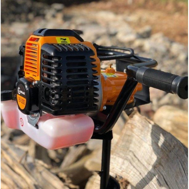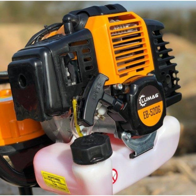 Мотобур Lumag EB520G - це універсальний інструмент для буріння грунту під різні завдання (встановлення опор і огорож, посадка дерев, монтаж технічних конструкцій тощо), який буде ефективним як у власному господарстві, так і для робочих задач. Оснащений фірмовим одноциліндровим двотактним бензиновим двигуном з повітряним охолодженням, який має потужність 1,75 кВт та об’єм 52 м³. Дана модель облаштована редуктором черв’ячного типу, який розташований у масляній ванні. Відомий своєю надійністю та ефективною продуктивністю.
