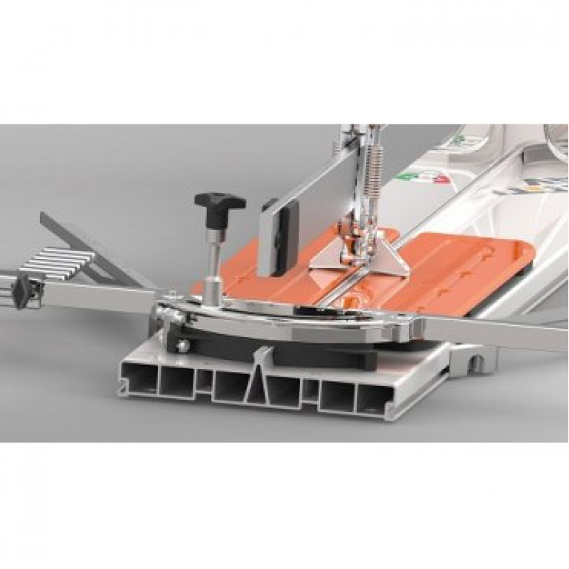 - ріжучий блок на підшипниках легко ковзає по рейці, а для рівного відрізу ріжуча частина обладнана упором, який допомагає відокремити відрізані половинки;