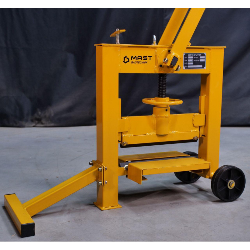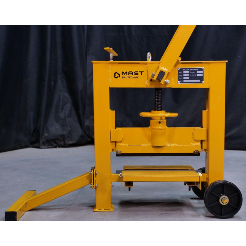 Ручний колун бруківки MAST Bautechnik MT-BS3214 - це компактне, просте в експлуатації обладнання для розколювання бруківки, тротуарної плитки, композитного каменю, панелей, бордюрів і подібних матеріалів. Розколювання здійснюється вручну, за допомогою довгого важеля з противагою, який створює значне зусилля і зменшує фізичне навантаження на оператора. Оснащений ножовою планкою із загартованої сталі. Максимальна ширина різу становить 330 мм, глибина різання регулюється у діапазоні 26-140 мм за допомогою центрального нарізного шпинделя.