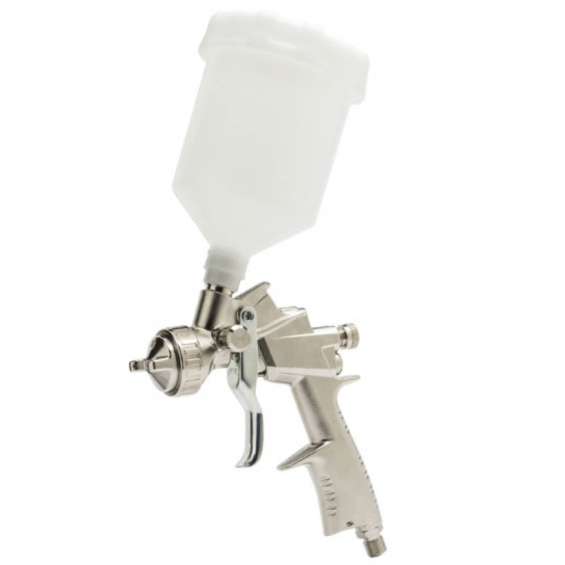 Пневматичний краскопульт HVLP F1-NS ANI Spa (AH1507059A) – це ручний інструмент для фарбувальних робіт. Аерограф призначений для кузовних операцій на автосервісі. Підійде для роботи у виробництві та будівництві. Для роботи інструменту потрібна енергія стисненого повітря (компресор). Купити пневматичний аерограф ANI Spa – найкраща ціна Гранична простота конструкції, максимум зручностей та доступна ціна. Так коротко можна охарактеризувати ручний інструмент для фарбувальних операцій. У фарбопульта (пульверизатора) є управління потужністю повітряного потоку зі зміною кута розпилення фарби. При правильному налаштуванні легко досягти якості фарбування навіть в один прохід. Краскопульт має верхнє розташування бака (постачається в комплекті 500 мл бачок, що знімається). Інструмент легко обслуговується – чищення чи ремонт. Виробник ANI Spa випускає під аерограф змінні насадки та запчастини, що дуже зручно для вибагливого маляра в автосервісі.
