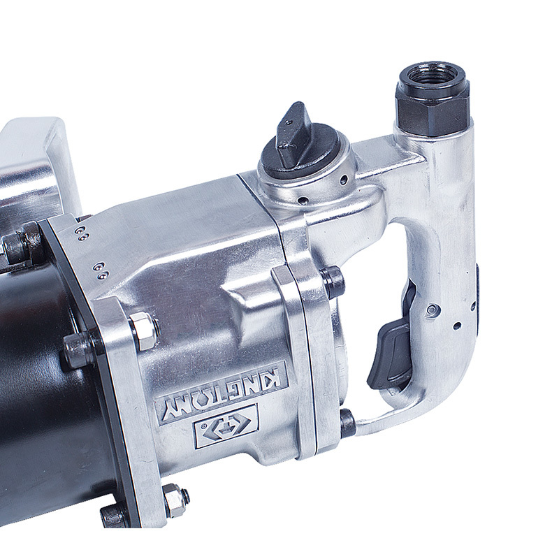 Пневматичний гайковерт King Tony (33831-180) з коротким валом – професійний ручний інструмент для автосервісу. Призначений для відкручування або закручування гайок та болтів великих розмірів. Джерелом живлення гайковерта є енергія стиснутого повітря, що надходить від компресора. Інструмент орієнтований на промисловість та автосервіс. Доступна ціна приваблює будівельників та малий бізнес. Купити пневматичний гайковерт Кінг Тоні 33831-180 Компактність та висока потужність – це два найцікавіші критерії, які залучать до інструменту покупця. Для своїх габаритів та ваги, пристрій чудово справляється із завданнями будь-якої складності. При бажанні можна замінити укорочений вал на стандартний або подовжений. Корпус гайковерта виготовлений із алюмінієвого сплаву. Вал - хромомолібденова сталь з обробкою фосфатним потопленням. В інструменті є ударний механізм – «Подвійний молот», який забезпечує гайковерт гідною потужністю для роботи із проблемними елементами кріплення. Випуск надлишків повітря виконується через ручку, є система зниження шуму.