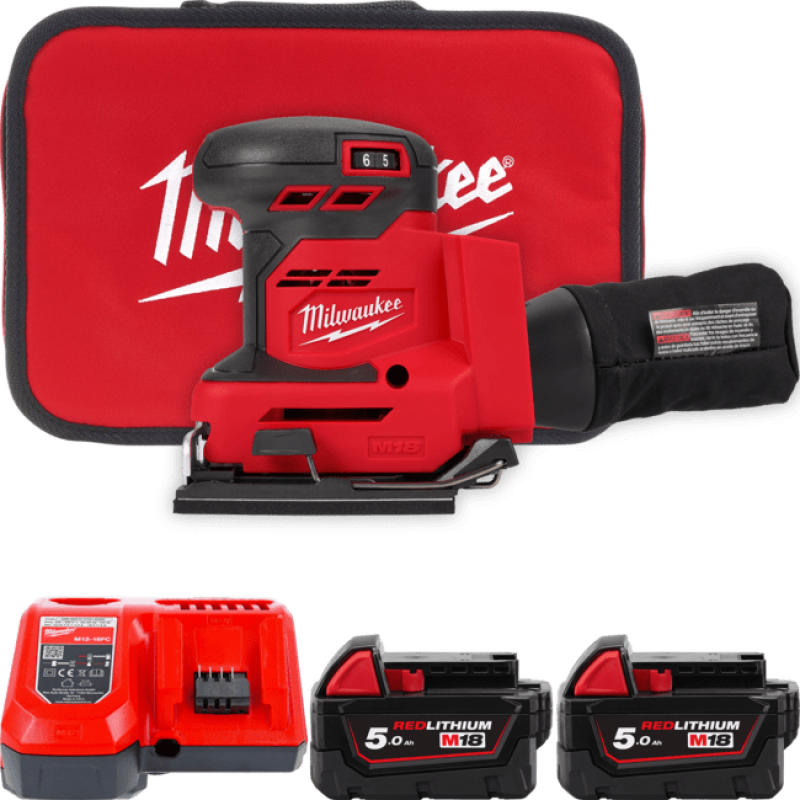 Машина шліфувальна вібраційна акумуляторна MILWAUKEE, M18 BQSS-502B (+зар.пр., 2 акум.Х5Аг, сумка)
