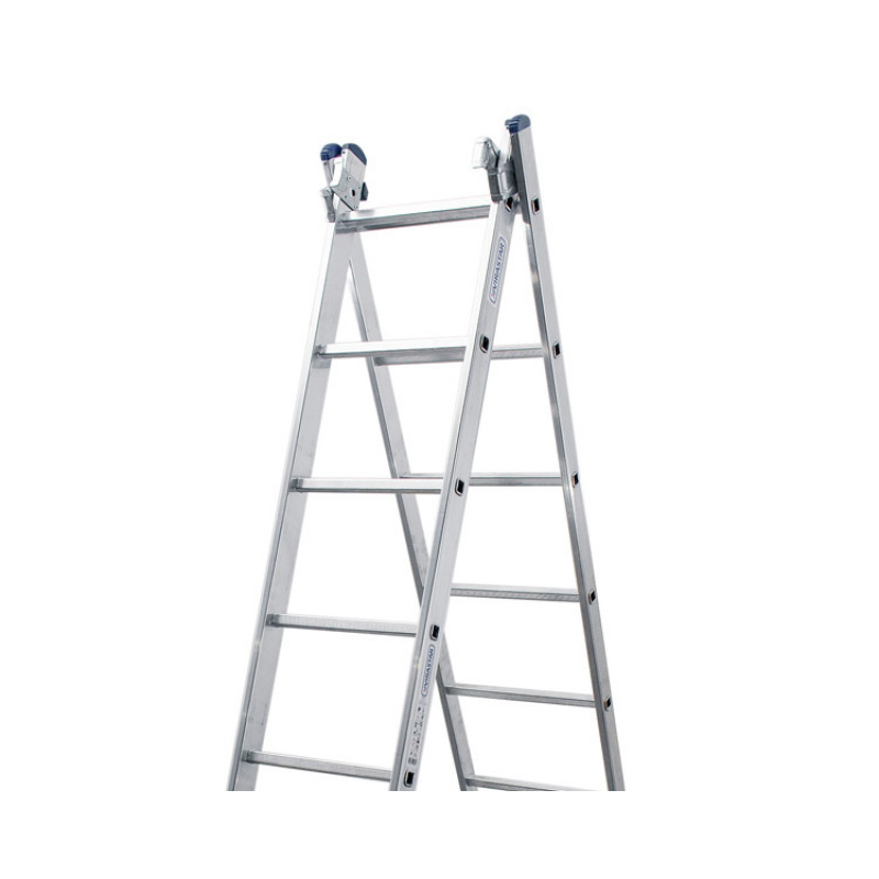 - алюмінієва двосекційна драбина 2x12 сходинок DUOMAX VIRASTAR має декілька робочих положень;