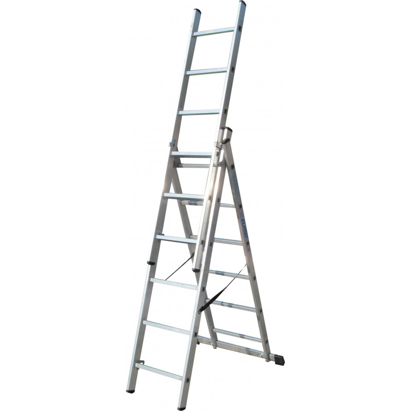 Драбина Elkop VHR Trend 3x6 - трисекційна універсальна алюмінієва драбина, яка добре підходить як для побутового, так і для професійного використання. Представлена модель може виконувати функції трьох типів драбин:приставних, висувних і стремянок. Запобіжні текстильні стропи забезпечують безпечне використання і запобігають випадковому розкриттю в процесі експлуатації.
