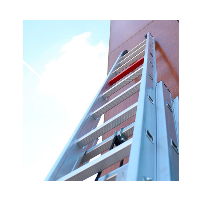 Трисекційна драбина VIRASTAR 3x12 сходинок з канатною тягою використовується з обов'язковим упором на стіну або на іншу нерухому поверхню:
