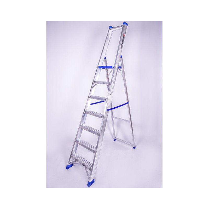 | Короткий опис | Одностороння алюмінієва стрем'янка SVELT REGINA 7 сходинок з висотою майданчика 1,61 м і захисним пристроєм. |