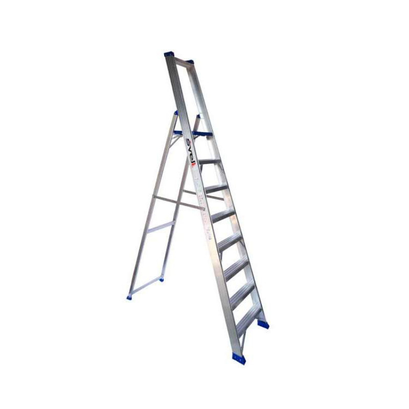 Одностороння алюмінієва стрем'янка SVELT REGINA 8 сходинок призначена для інтенсивного професійного використання на максимальній висоті 0,69 м: