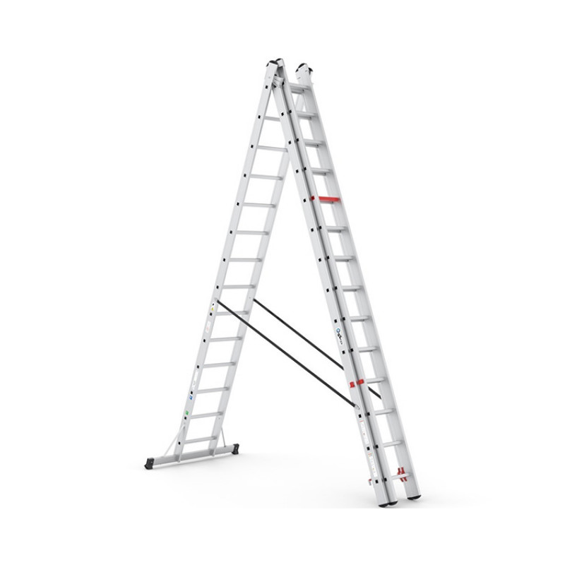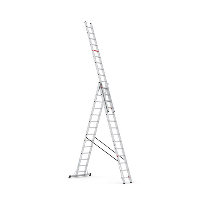 - трьохсекційна алюмінієва драбина VIRASTAR Triomax Pro 3x14 сходинок регулюється по висоті для забезпечення найкращих умов роботи;