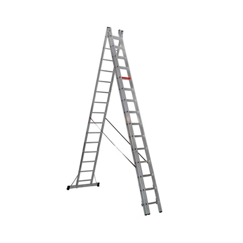 - трьохсекційна алюмінієва драбина VIRASTAR Triomax Pro 3x15 сходинок регулюється по висоті для забезпечення найкращих умов роботи;