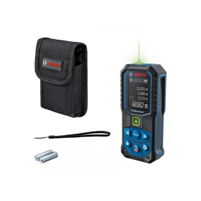 Лазерний далекомір Bosch GLM 50-25G Professional; Батарейки (2 шт); Чохол; Ремінь для перенесення.