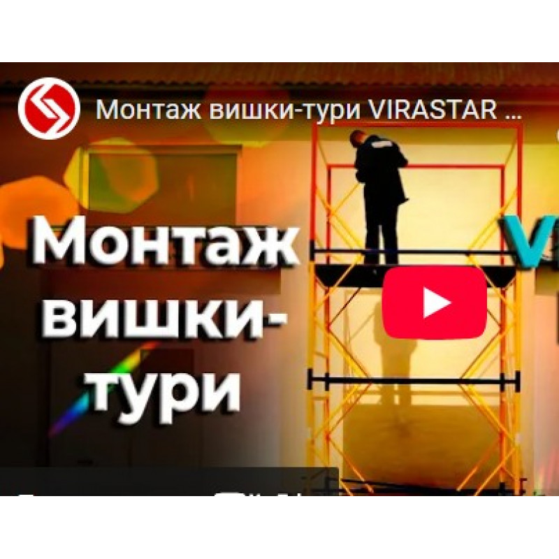 | Короткий опис | Вишка-тура VIRASTAR «Профі» 15+1: полегшена база, домкрати, розміри робочого майданчика 2,0х2,0 м і робоча висота 20,5 м. |
