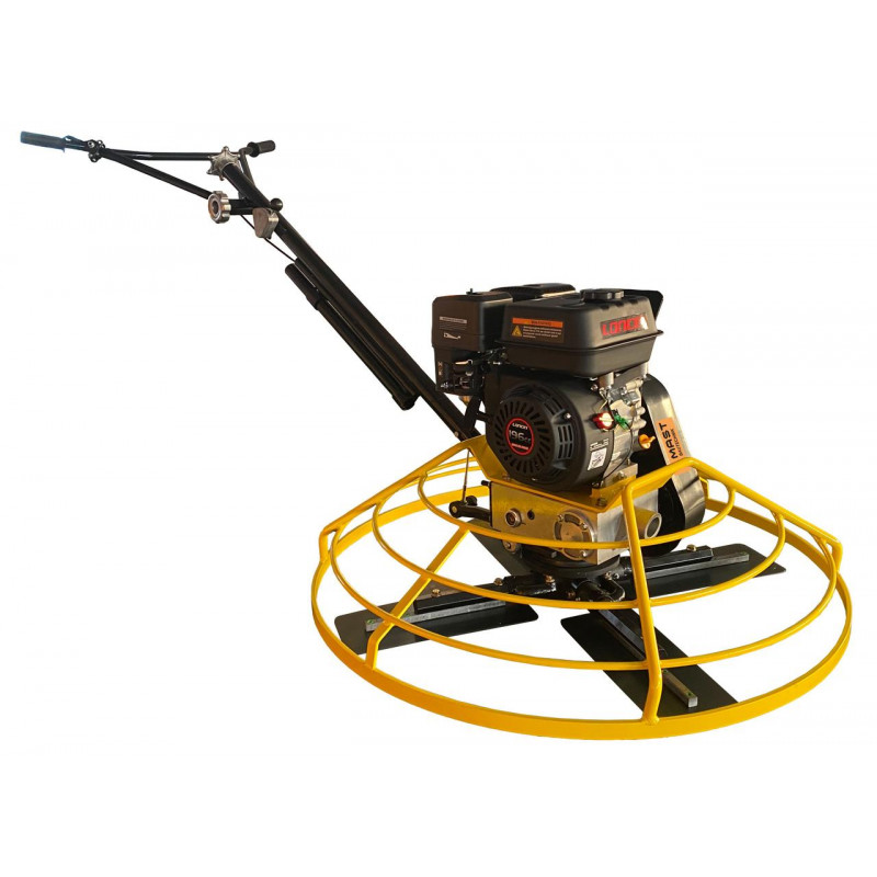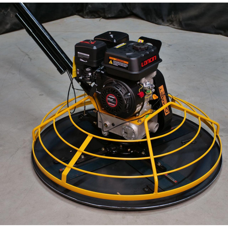 Витривалий бензиновий двигун LONCIN G200F потужністю 4,1 кВт і плавне регулювання швидкості обертання лопатей у діапазоні 60-140 об/хв забезпечують високу продуктивність обробки і швидке досягнення ідеального результату. Місткість паливного бака 3,6 л дозволяє тривалу роботу без зупинок для дозаправки. Завдяки ергономічній ручці, компактному дизайну і простому керуванню ця бетонозатиральна машина надзвичайно зручна в експлуатації. В комплект поставки входить сталевий диск для шліфування.