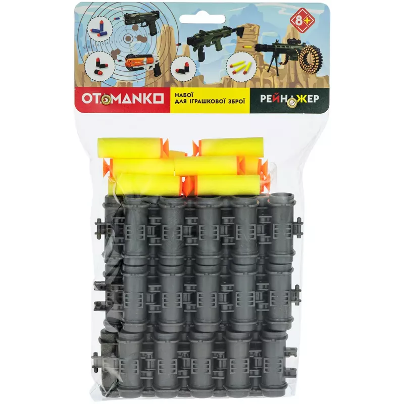 Патрони (стріли) OTAMANKO призначені для використання з іграшковою зброєю Рейнджер від бренду OTAMANKO. Можна використовувати як заміну загублених або поповнити свої боєприпаси. Патрони виготовлені з EVA матеріалу (спіненого полімеру, який унеможливлює появу синців і подряпин у разі випадкового влучання в гравця). Закруглені, прогумовані наконечники додатково амортизують удар. Однак, для захисту очей рекомендується використовувати окуляри (не входять до комплекту). Гільзи виготовлені з пластику.