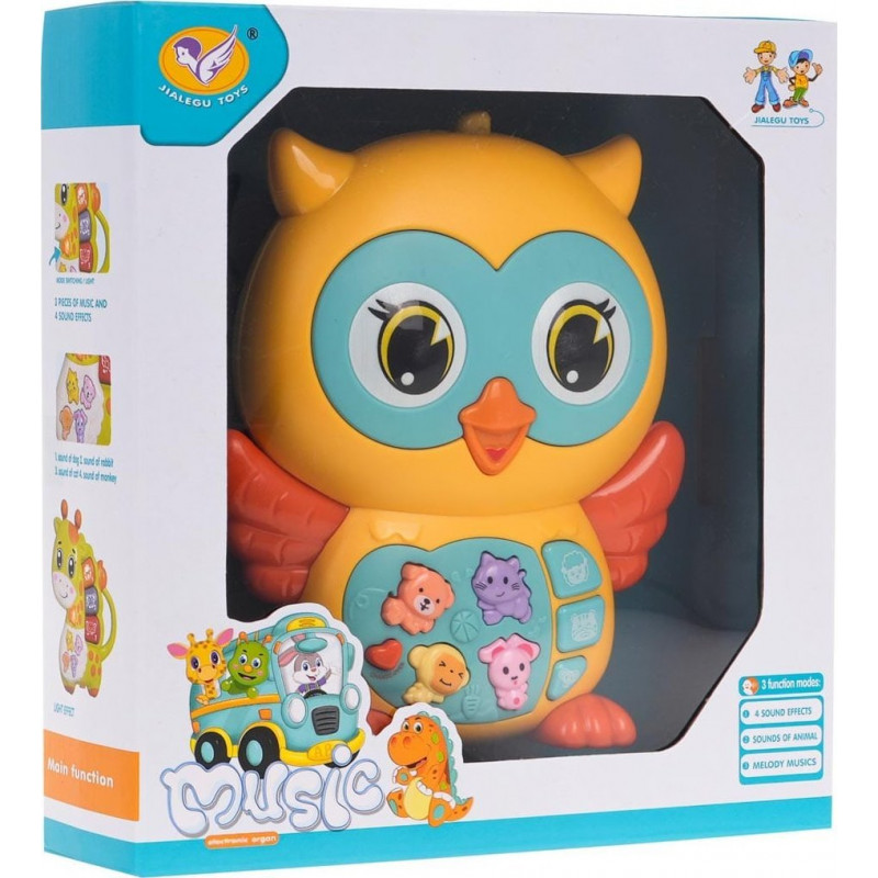 Завдяки своїм яскравим кольорам іграшка привертає увагу дитини, спонукаючи до взаємодії та залучення. На животі сови розташована панель з кнопками , які активують різні звуки тварин, мелодії та звуки Do-Re-Mi. Звукові ефекти збагачені мерехтливими вогниками на крилах сови .
