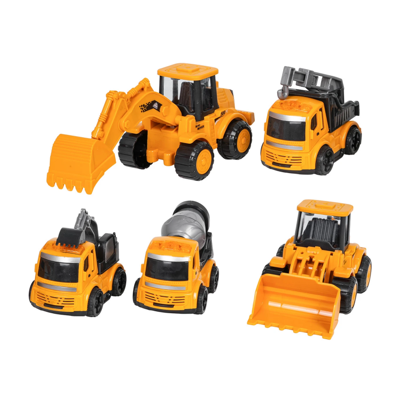 Набір з п'яти будівельних машин - це приваблива пропозиція для дітей від трьох років, яка переносить світ будівельного майданчика в повсякденні ігри. П'ять різноманітних машин - екскаватор, екскаватор-навантажувач, кран, бетономішалка та бульдозер - утворюють повний парк, що дозволяє розігрувати безліч реалістичних сцен. Іграшки виготовлені з високоякісного пластику, стійкого до пошкоджень і безпечного у використанні. Завдяки міцній конструкції та яскравим кольорам набір привертає увагу і заохочує до активних ігор як вдома, так і на вулиці.