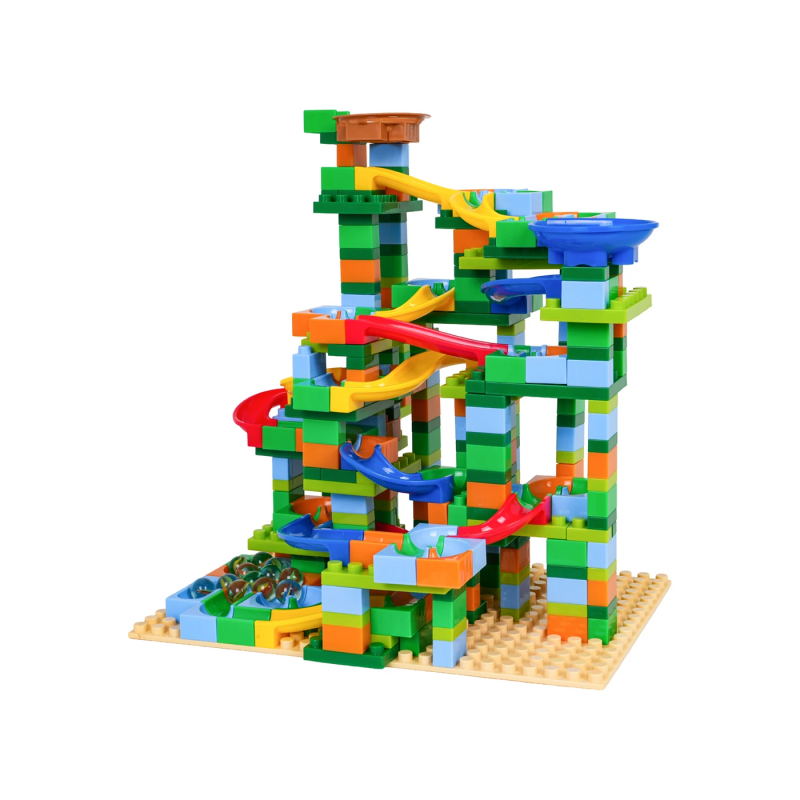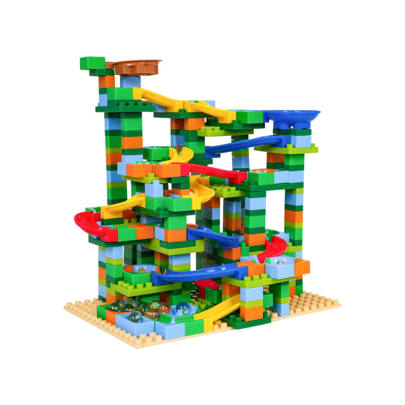 Дитячий конструктор Ramiz стане чудовим вибором для активної та змістовної гри. Набір містить 402 різнокольорові елементи, з яких дитина може створювати яскраві багаторівневі траси для кульок. Така гра поєднує творчість і динаміку: малюк не лише будує конструкцію, а й спостерігає, як кульки рухаються створеним маршрутом. Це робить процес захопливим та мотивує експериментувати з новими формами і поєднаннями.