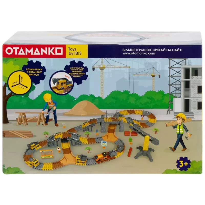 Залучайтеся до великого будівництва разом з OTAMANKO! Інтерактивний гнучкий трек зі спусками, підйомами та мостами перетворюється на справжній майданчик для техніки й машин. Маленькі інженери прокладатимуть маршрут серед бар’єрів і кранових механізмів. У комплекті — тематичні фігурки, техніка та знаки. Гра, яка розвиває логіку, фантазію й любов до техніки!