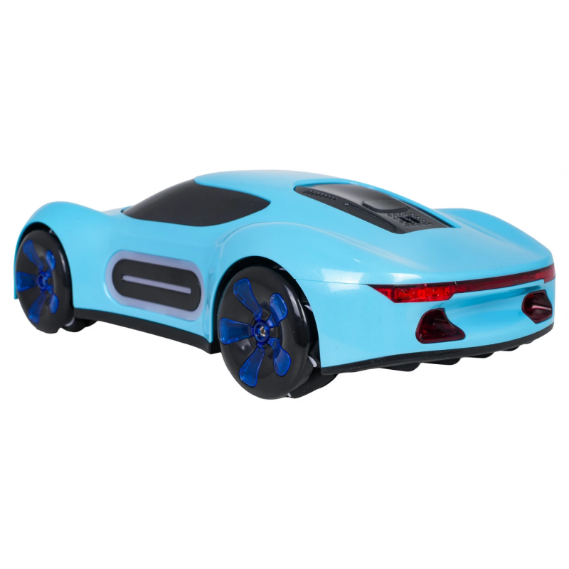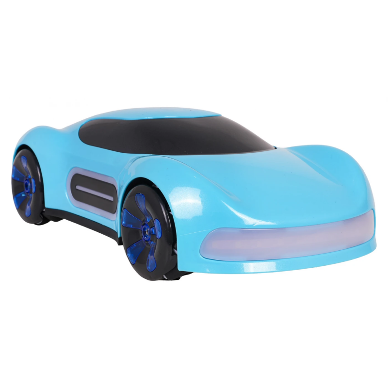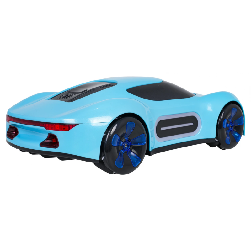 Автомобіль з функцією диму, керований за допомогою пульта дистанційного керування та годинника синього кольору, є унікальною пропозицією для дітей від трьох років. Перламутровий кузов у поєднанні з ефектним підсвічуванням коліс, боків, передньої та задньої частини надає автомобілю надзвичайно футуристичного вигляду. Завдяки сучасним технічним рішенням він поєднує в собі естетику, потужність і безліч емоцій під час гри.