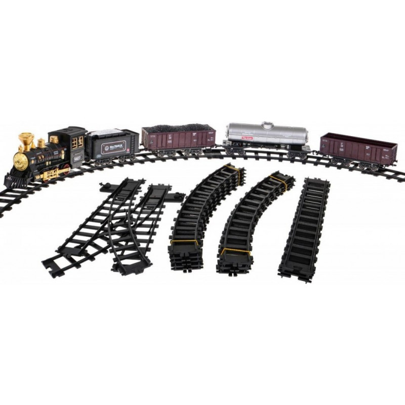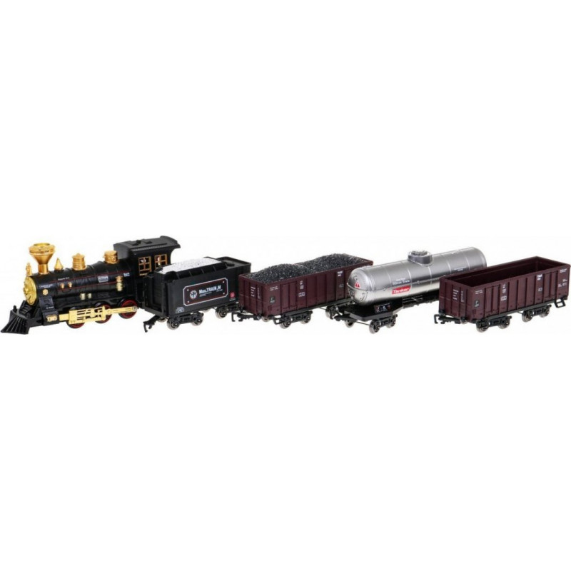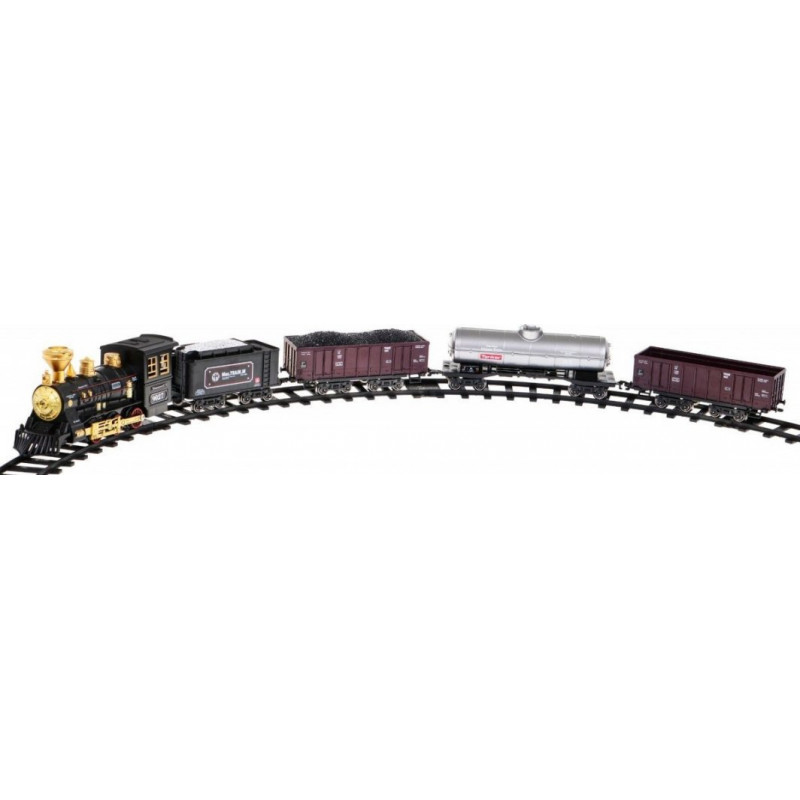 Ми представляємо багатообладнаний поїзд із 4 вагонами та вражаючою функцією диму . Іграшка рекомендована дітям від 5 років і подарує задоволення протягом довгих годин. Крім локомотива в набір входить цистерна і 3 вантажних вагони . Все це стилізовано під старовинний потяг.