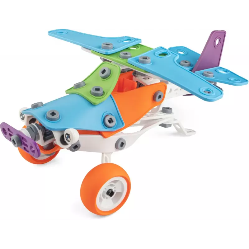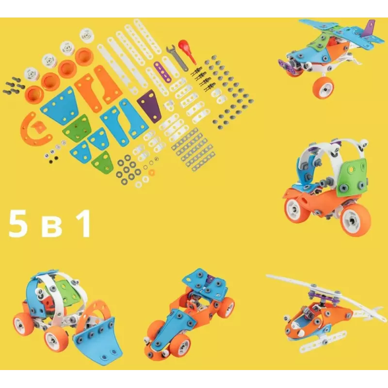 Цей набір – справжнє відкриття для маленьких інженерів, адже з його деталей можна зібрати цілих 5 різних моделей! Будь це автомобіль, вертоліт чи навіть літак – вибір за малюком! Кожна модель унікальна і допоможе дитині розвивати фантазію та технічні навички.