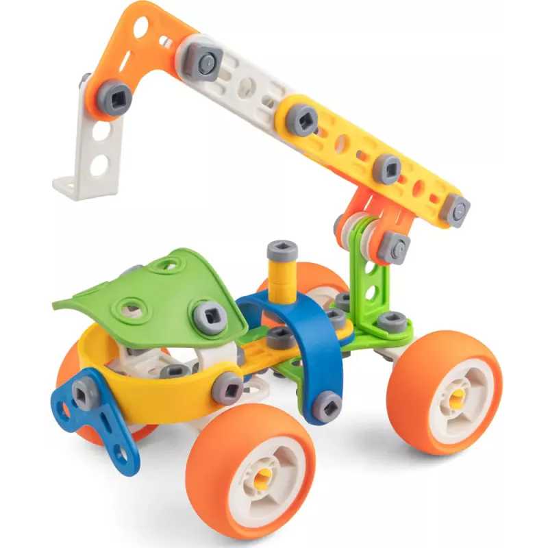 Всі деталі легко з'єднуються, і що найголовніше – деякі з них такі гнучкі, що їх можна зігнути, як тільки захочете. Це дає вам можливість створювати особливі конструкції та адаптувати свій кран під будь-які будівельні завдання. Крім того, кольорові деталі роблять процес складання більш веселим та захоплюючим!