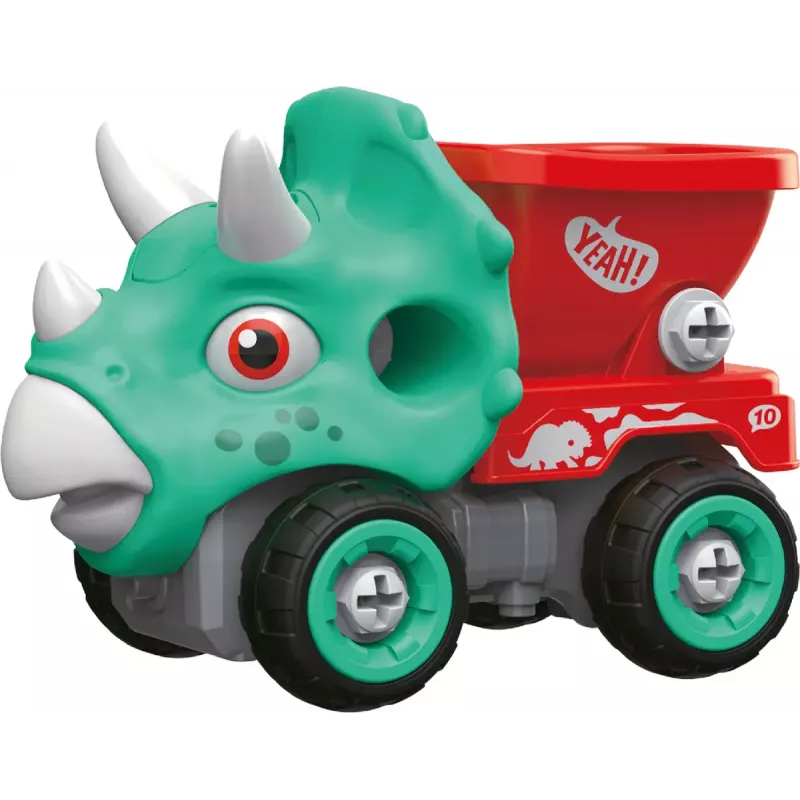 Це машинка-динозаврик, яку дитина збирає сама за принципом конструктора, розвиваючи дрібну моторику та логіку.