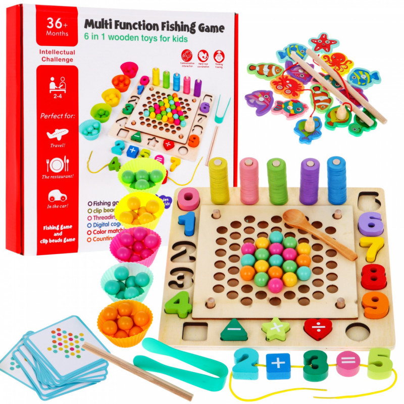 Перша з шести доступних ігор передбачає ловлю риби на магнітну вудку . У набір входить 2 вудки і 15 морських тварин , які також містять магніти. Мета - зловити якомога більше риби - ви можете грати поодинці або змагатися , хто швидше зловить рибу. Завдяки цій грі діти розвивають спритність, швидкість і координацію.