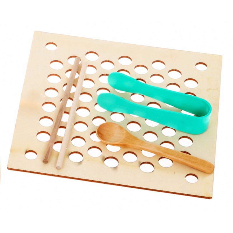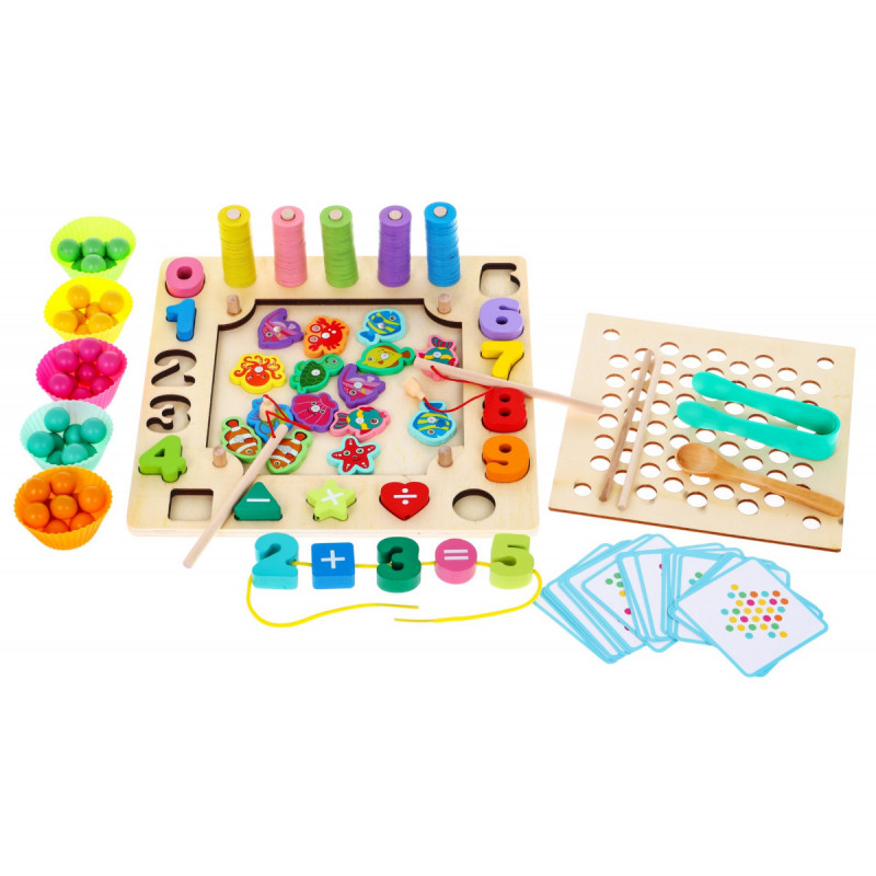 - велика дошка з 5 кілочками та отворами для цифр і форм,