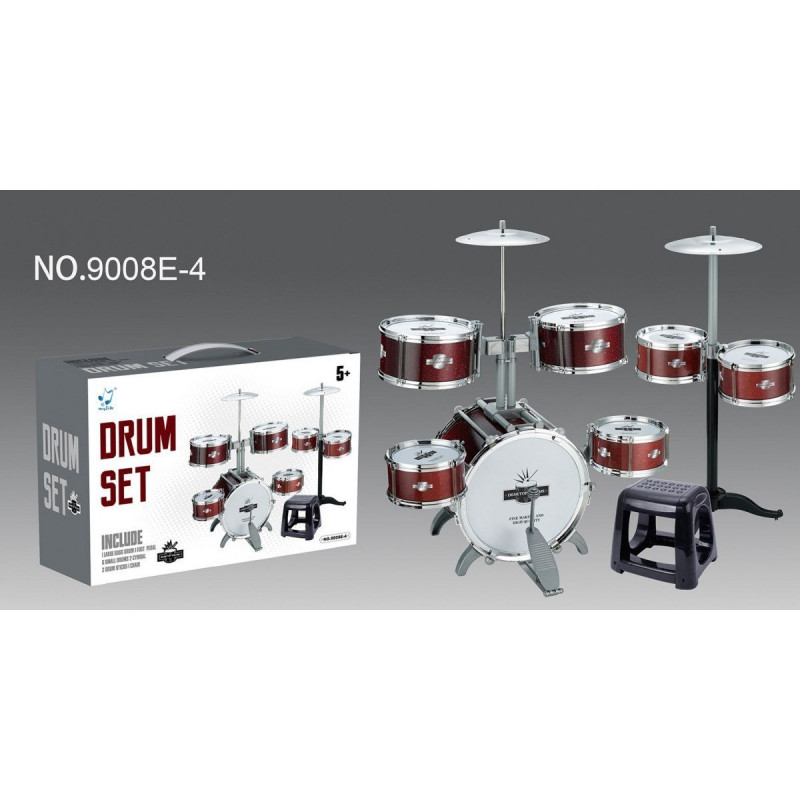 Барабани складаються з великого бас-барабана з педаллю, 2 середніх і 2 малих барабанів і тарілки. З іншого боку, додаткові 2 малих барабана і другий тарілка розміщені на другій підставці. Перед барабанами можна зручно розташуватися на стійкому табуреті з 4 посиленими ніжками.