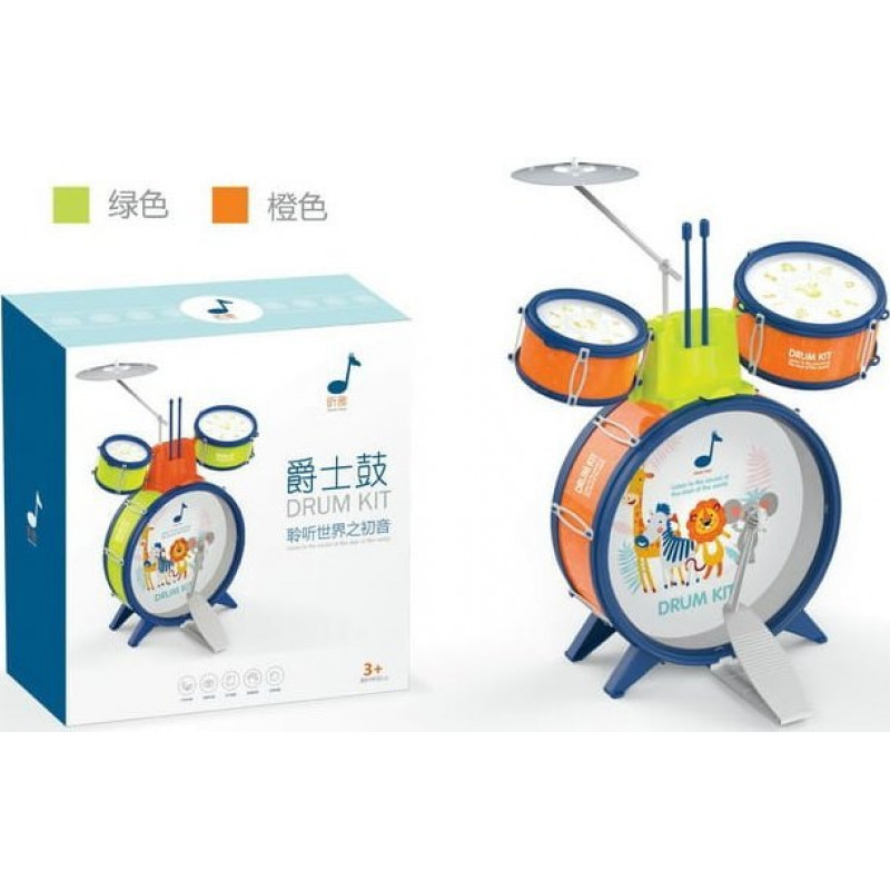 Барабани Safari для дітей від 3 років. Набір складається з 3 барабанів, тарілки і паличок. Він виготовлений з матеріалів найвищої якості в яскравих кольорах, які привертають увагу дитини та стимулюють гру. На великому барабані зображені рослини. Звук із великого барабана викликається натисканням на педаль, а з решти барабанів і тарілки — ударами палички. Використання цього набору розвиває інтерес дитини до музики та талант, навчає ритму та покращує координацію рухів.