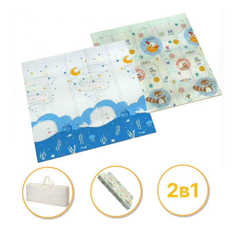Килимок виготовлений зі спіненої поліуретанової піни XPE — сучасного, екологічного та гіпоалергенного матеріалу. Він не має запаху, не вбирає вологу та легко очищується від забруднень. Матеріал стійкий до деформацій і зберігає форму навіть при тривалому використанні.