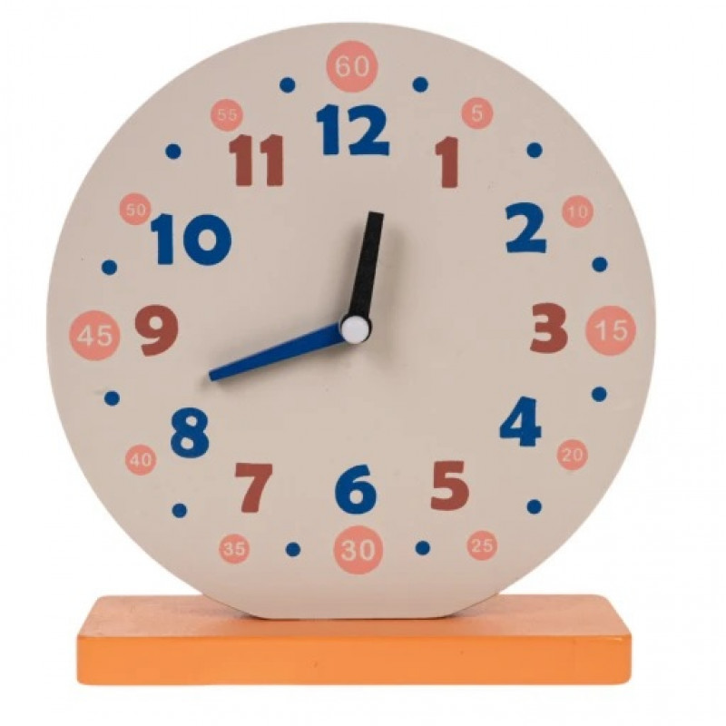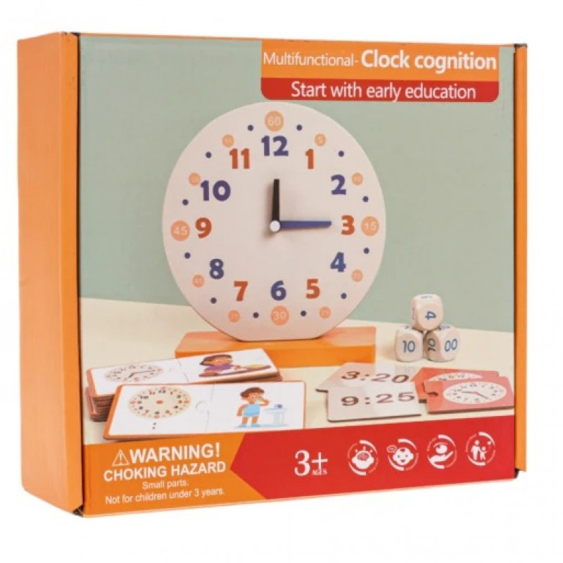 Дерев'яні кубики мають години та хвилини, що дозволяє дітям створювати та читати різні комбінації часу. Набір двосторонніх пазлів із годинником і різноманітними завданнями — цікавий спосіб потренуватися позначати відповідні години на традиційному годиннику.