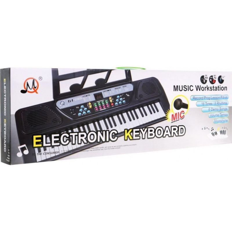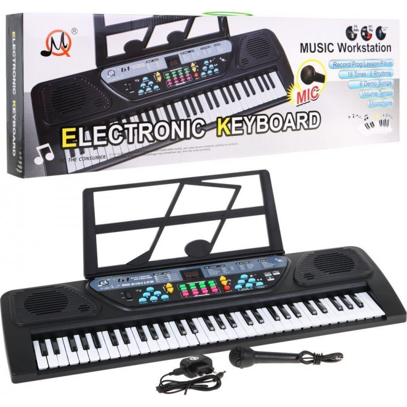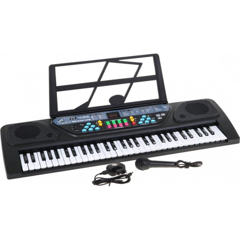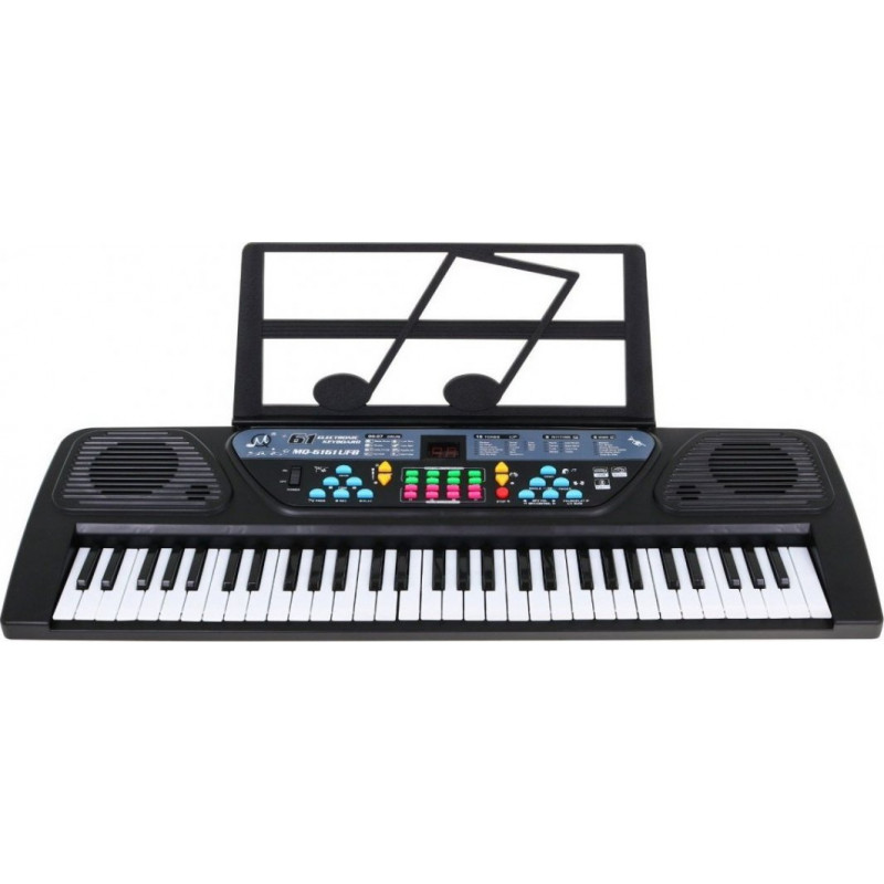 Варто здійснити музичні мрії дітей і подарувати їм клавіатуру , яка розвиватиме їхні навички. Інструмент складається з 61 клавіші , тобто 5 октав, панелі з додатковими ефектами і 2 вбудованих динаміків . Аксесуари також включають сумісний мікрофон для співу та музичну підставку, що приєднується .