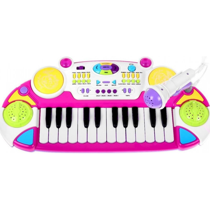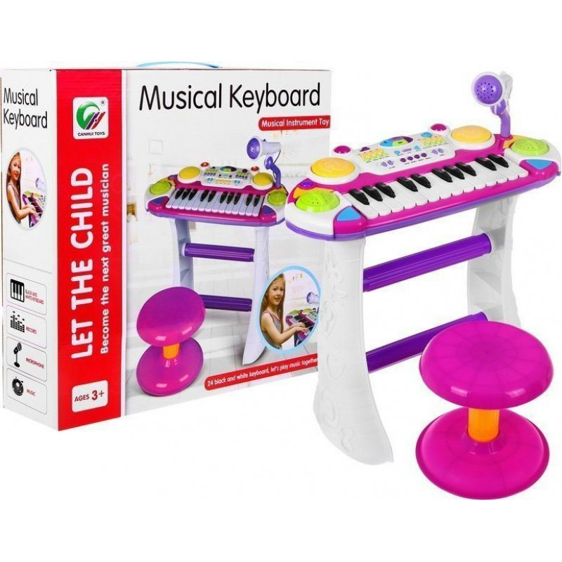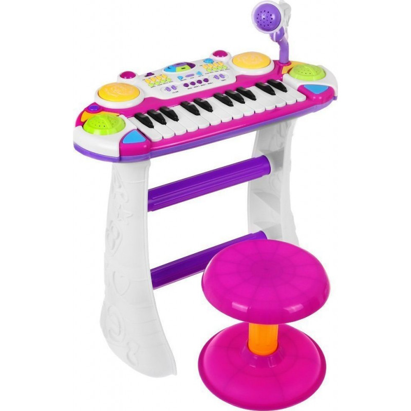 Барвистий музичний столик з багатофункціональною клавіатурою стане мрією дітей від 3 років . Особливо рекомендується дівчатам через домінуючий рожево-фіолетовий відтінок.