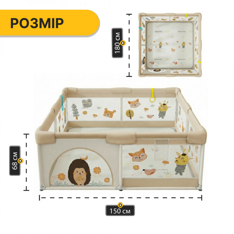 Дитячий манеж LEOBRO "Лісовий Їжачок" 150 x 180 см (LB-1001)