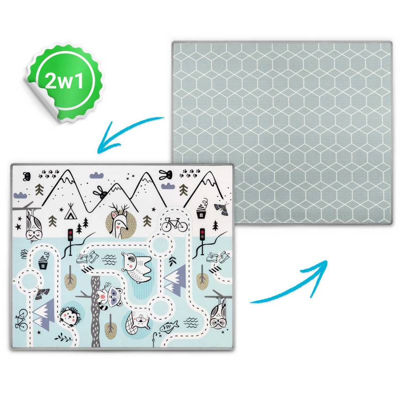 Цей унікальний великий килимок розміром 180х150 см має багато практичних застосувань. Він забезпечить вашому малюку комфорт під час ігор, повзання та сидіння!
