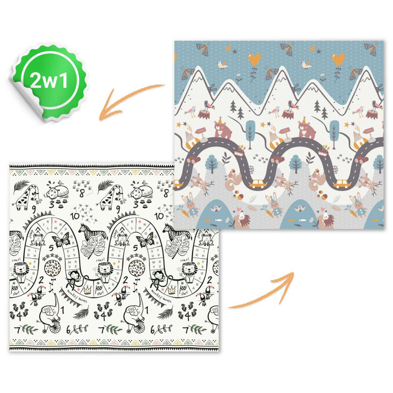 Цей унікальний великий килимок розміром 200 х 180 см має багато практичних застосувань. Він забезпечить вашій дитині комфорт під час ігор та навчання повзання!