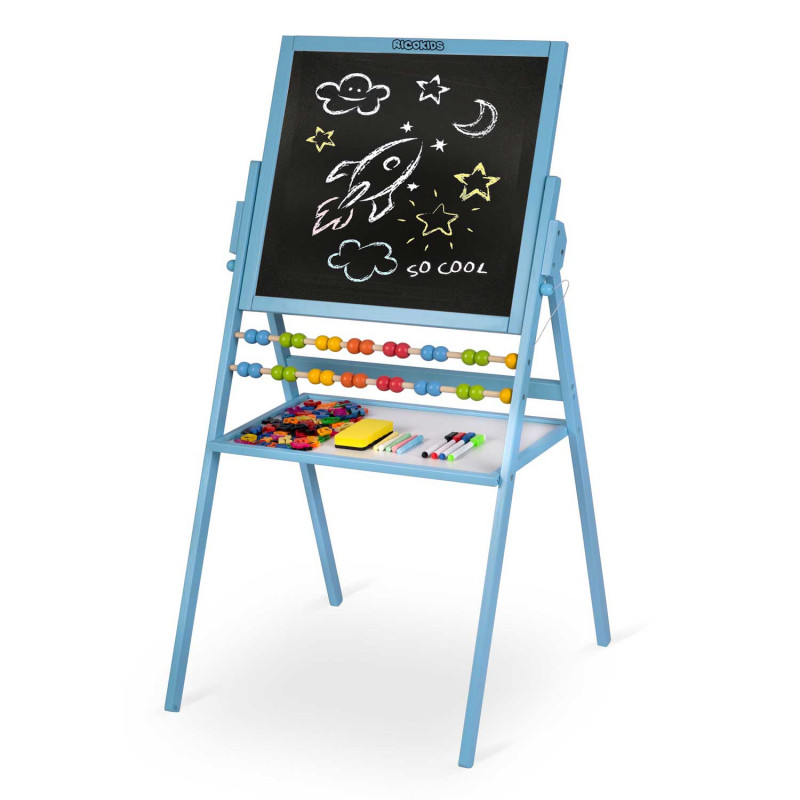 Подаруйте своїй дитині особливу радість. Велика і стійка дитяча дошка для малювання від Ricokids - це дитяча мрія, що здійснилася.У наборі є все необхідне для навчання та ігор.