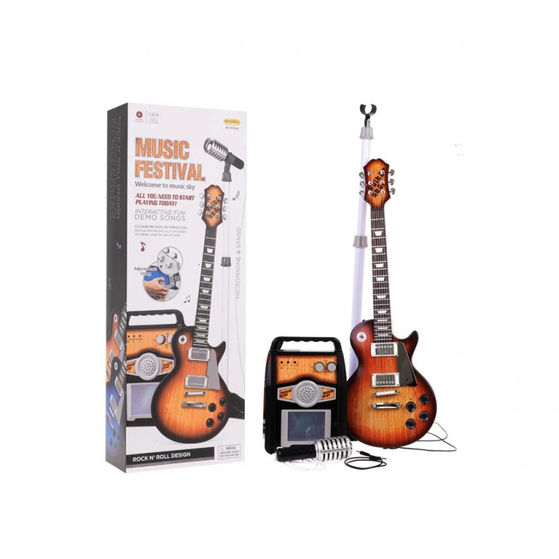 Багатофункціональний музичний набір - чудовий вибір для юних артистів, які хочуть відчути себе справжніми музикантами. Електрогітара зовні нагадує професійний інструмент, що робить іграшку дуже привабливою. До набору також входить підсилювач з різними функціями та мікрофон на регульованій підставці. Юний артист також може обирати мелодії та ритми щоб тренувати свою майстерність. Вбудована кольорова підсвітка на підсилювачі додає неповторної атмосфери музичним виступам.