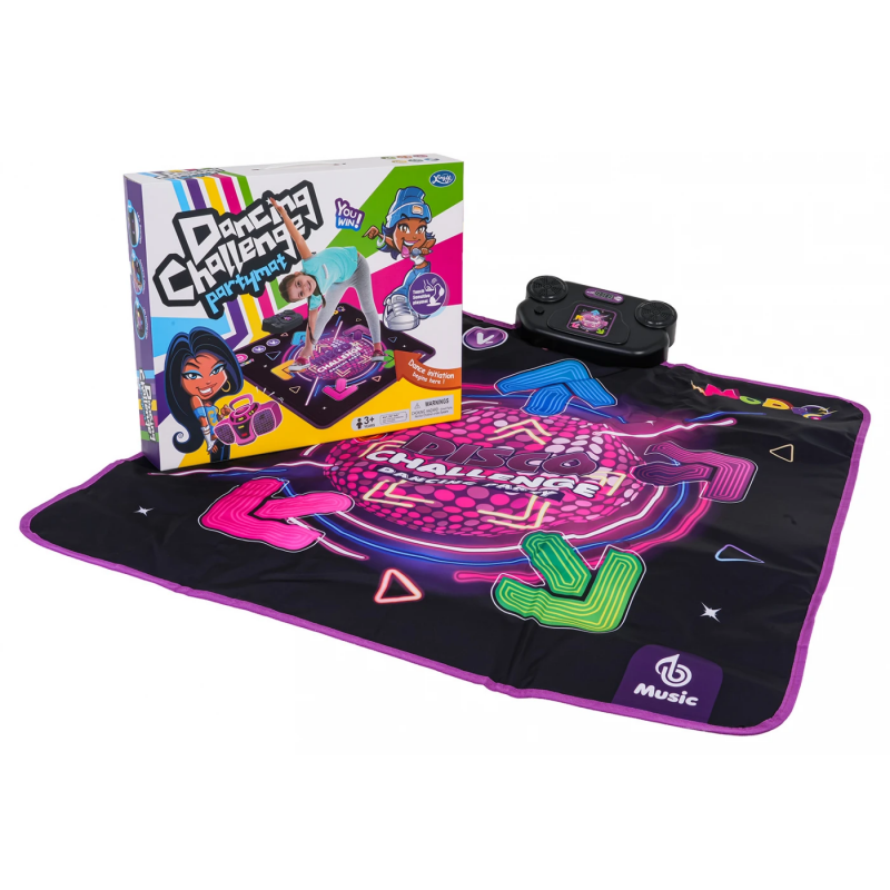 Музична килимок DISCO Challenge - це динамічна гра для дітей віком від 3 років, яка поєднує рух, мелодії та інтерактивну розвагу. Вона вирізняється кольоровою графікою, світловими ефектами та сучасним панелем з дисплеєм очок і миготливими стрілками, які є завданнями.