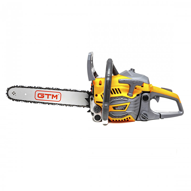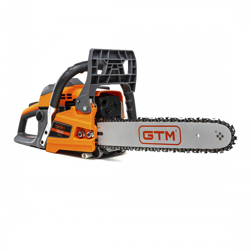 GTM CN40-CH - високопродуктивна бензопила побутового класу, призначена для середніх навантажень під час обрізання саду, заготівлі дров, столярних і теслярських роботах в будинку. Інструмент обладнаний 2-тактним бензиновим двигуном з потужністю 1,7 кВт (2,3 к.с.) з підвищеним крутним моментом і збільшеним ресурсом роботи. Як паливо використовується суміш бензину з моторним мастилом у пропорції 40:1 (на 1 л бензину 25 мл мастила).
