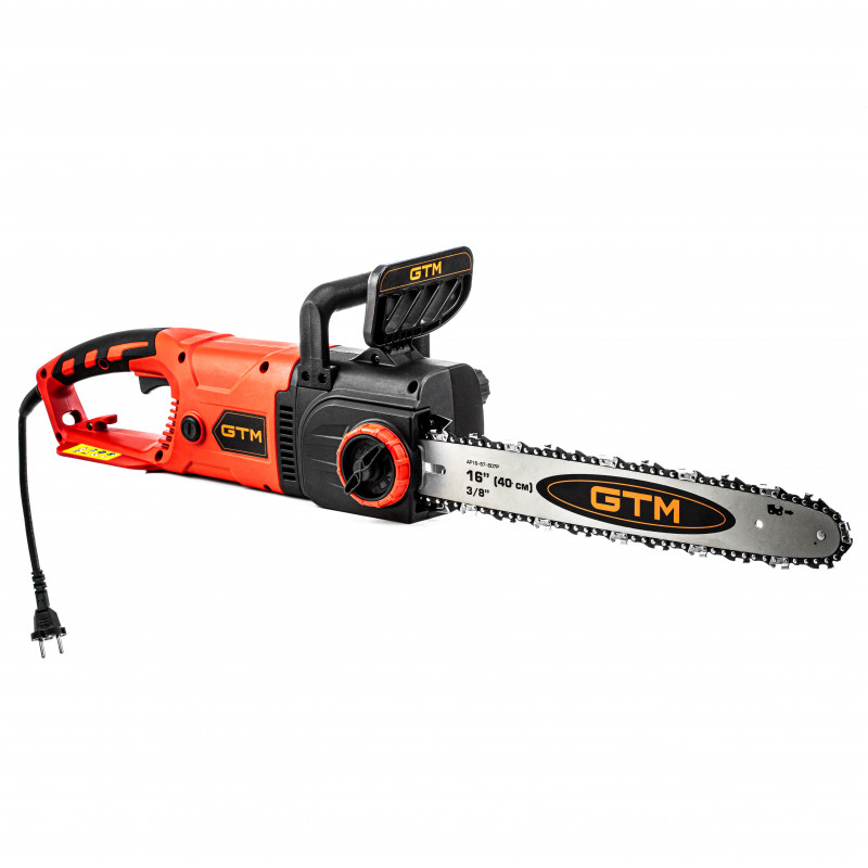 GTM CS16/2000ТН - продуктивна електропила побутового класу, призначена для обрізання саду, заготівлі дров, столярних та теслярських робіт по будинку. Інструмент обладнаний електричним двигуном потужністю 2000 Вт. Відсутність вихлопів дозволяє працювати з інструментом навіть у приміщенні. Пила комплектується шиною довжиною 40 см і фірмовим ланцюгом з кроком 3/8 дюйма, що рухається зі швидкістю 13.5 м/с. Для збільшення безпеки користувача в конструкції є плавний запуск інструменту, а також швидкий доступ до щіток для заміни.