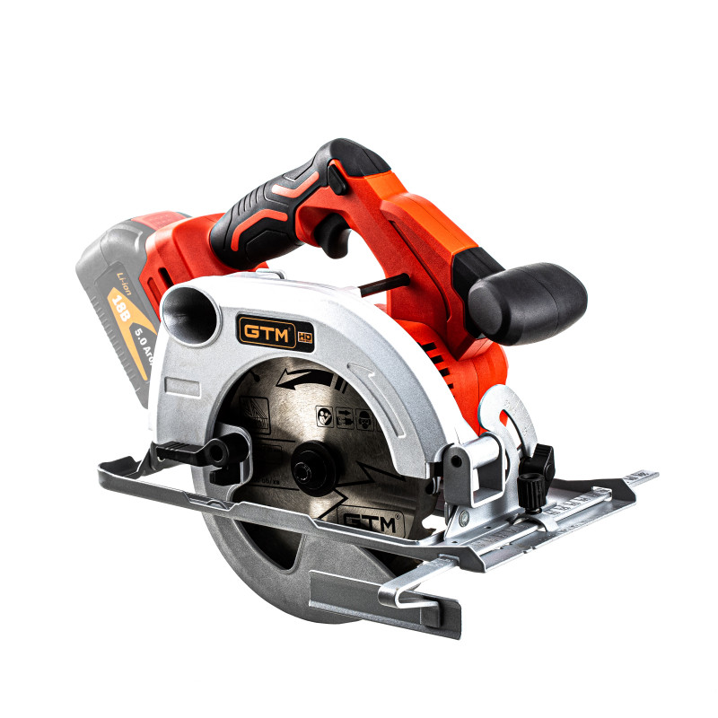 GTM CS18/165BL - інструмент для прямолінійного розпилу різних матеріалів: дерева, листів фанери та ДСП, кольорових металів або сталі. Дискова пила має вбудований безщітковий двигун і живиться від стандартних акумуляторів GTM 18V. Як витратний матеріал використовуються пильні диски розміром 165х20 мм.