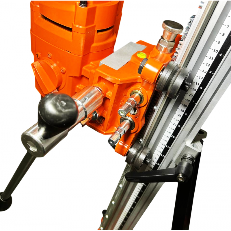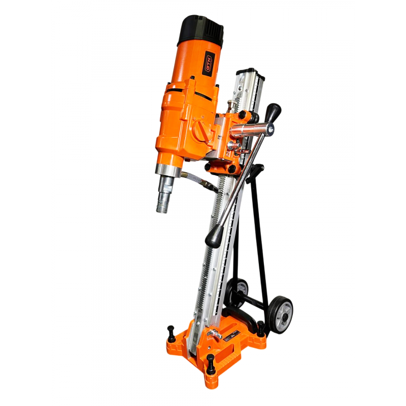 Бурильна установка GTM BMK-406/3AC/45 - електрообладнання для мокрого буріння отворів в бетонних, кам'яних, цегляних і гранітних поверхнях за допомогою алмазних коронок. Представлена модель фіксується на спеціальній стійці (станині), яка входить в стандартну комплектацію. Підключається до системи водяного охолодження і дозволяє проробляти отвори діаметром до 400 мм. Алмазна коронка кріпиться безпосередньо до шпинделя без використання патрона.