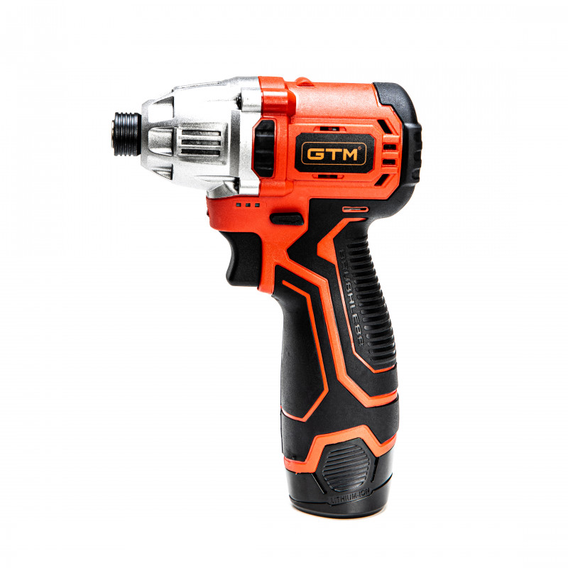 GTM IS12/120BL - компактний гвинтокрут побутового класу з живленням від Li-Ion акумуляторів напругою 12 В. У шурупокруті встановлений шестигранний патрон з фіксатором для роботи з бітами. Двигун у цій моделі безщітковий, що значно зменшує розміри корпусу і вагу.