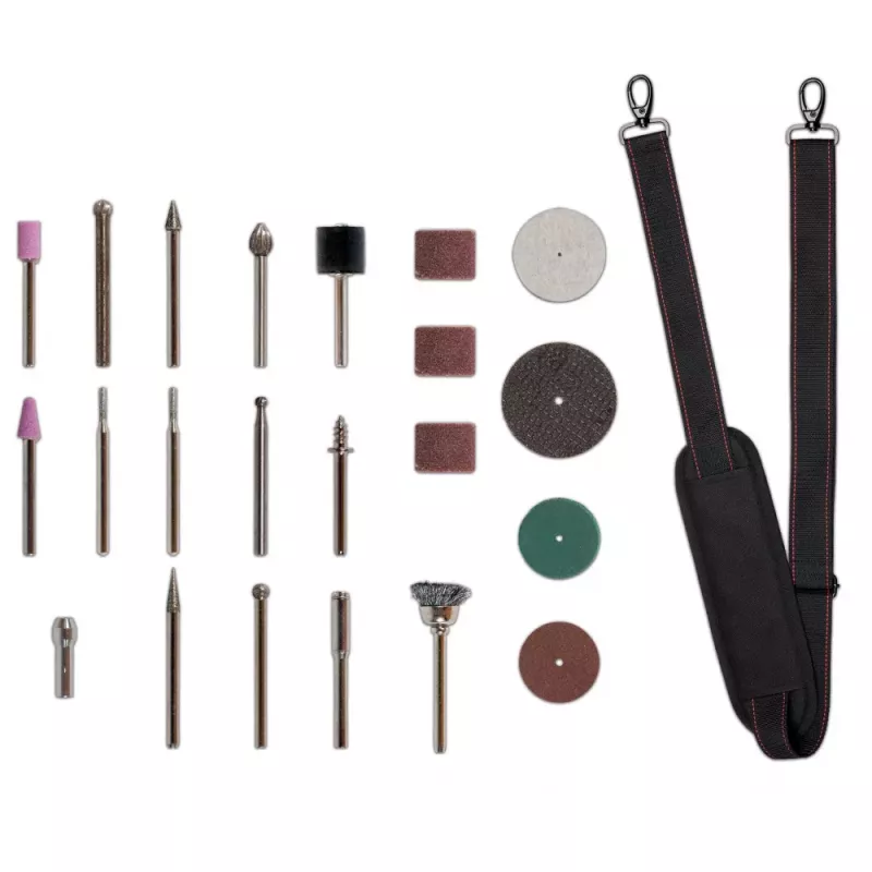 Цей універсальний інструмент ідеально підходить для точних робіт з металом, деревом, пластиком, скла та керамікою. Незамінний для ювелірів, моделістів, реставраторів, майстрів з декоративно-прикладного мистецтва та всіх, хто цінує точність і якість у деталях. Великий набір з 55 аксесуарів дозволяє виконувати найрізноманітніші завдання - від гравірування тексту та орнаментів до полірування металевих поверхонь та шліфування дрібних деталей. Завдяки системі Power X-Change ви можете використовувати один акумулятор для всіх інструментів серії Einhell PXC.