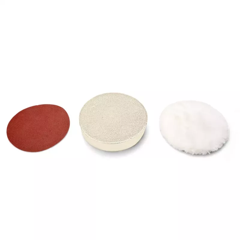 Багата комплектація: В комплекті піноматеріал для полірування, синтетичний полірувальний ковпачок та 3 шліфувальних папери різної зернистості