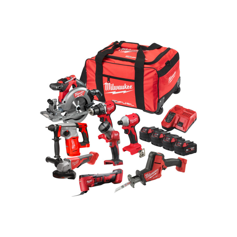 Набір інструментів акумуляторних MILWAUKEE M18 FPP8D-504B (зарядний пристрій M12-18 FC, 4 акумулятори M18 B5 5 Аг, M18 BLDDRC, M