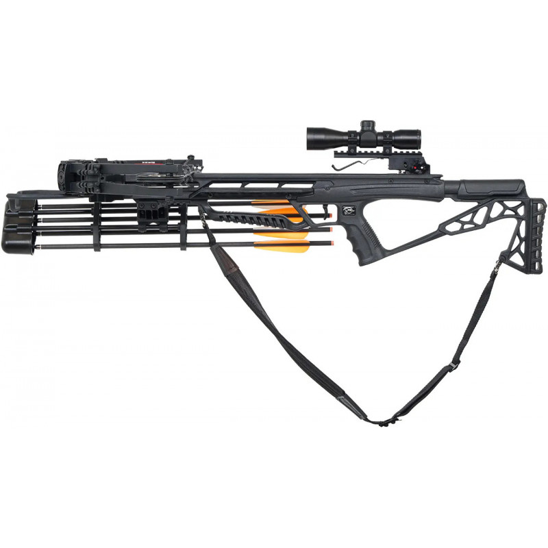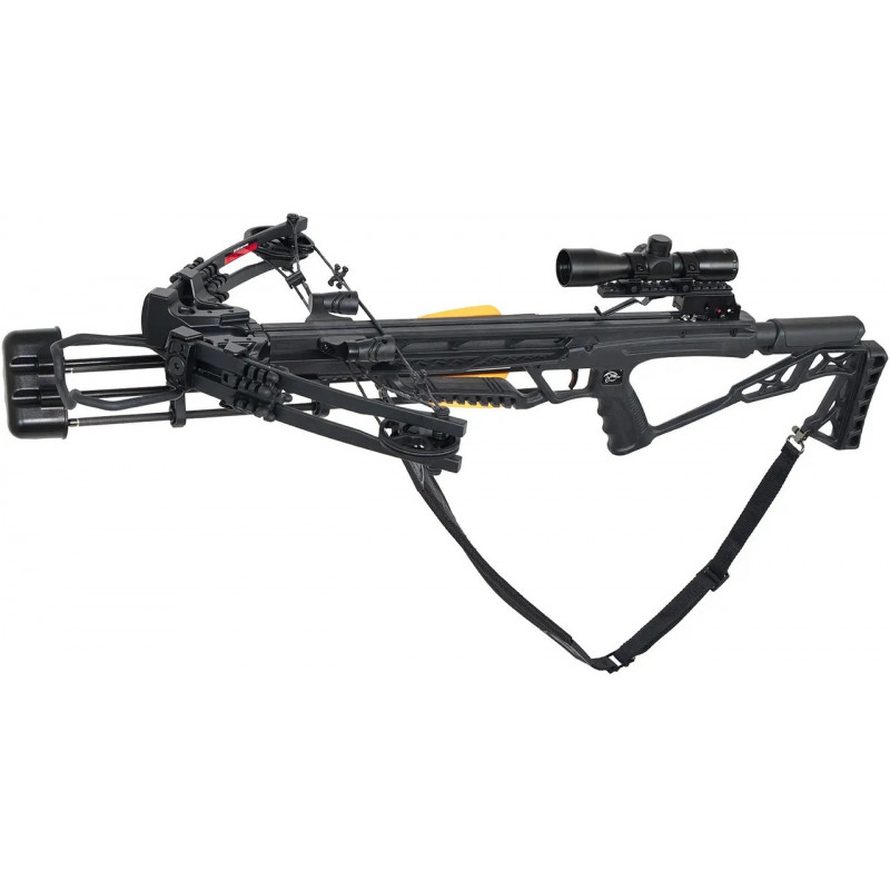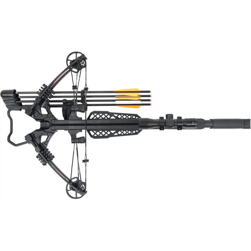 Для зручності стрільця арбалет обладнаний планкою Picatinny, на якій вже встановлено оптичний приціл 4х32 мм.