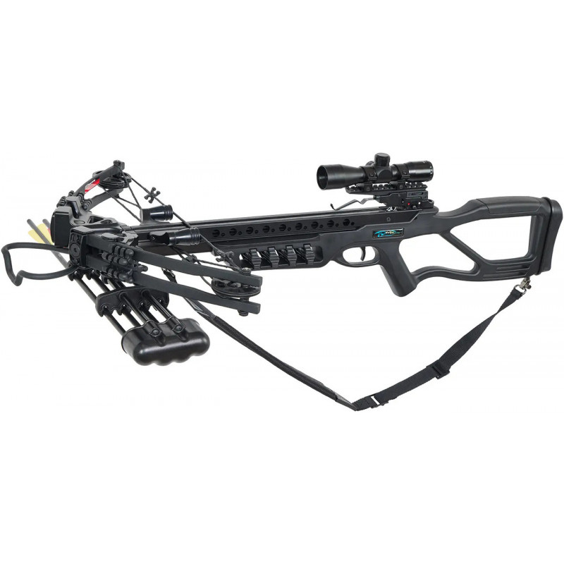 | Комплектація | Арбалет, ківер, ремінь, стремено, 4 стріли, оптичний приціл, натягувач, віск |
